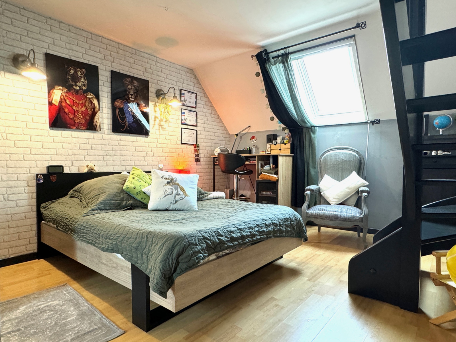 A l'étage vous retouverez, une mezzanine ou coin bureau, 3 belles chambres dont une avec mezzanine, emplacement salle d'eau, wc.