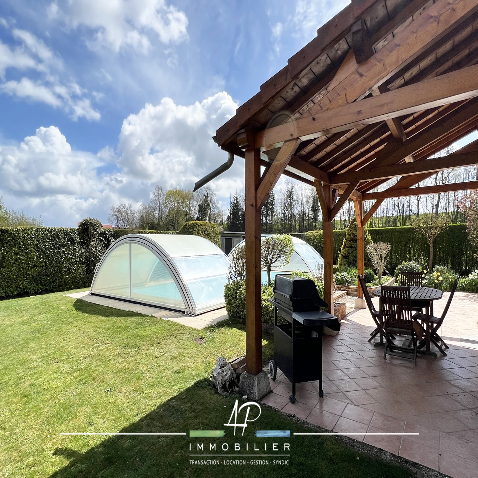 Le terrain est clos et magnifiquement arboré et fleuri. Il est agrémenté d'une belle terrasse couverte exposée sud/est et d’une piscine (4m x 8m) sécurisée par un abri. Le liner armé a été changé en 2020.