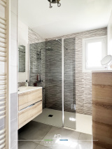 Chauffage : chaudière gaz de ville (DE DIETRICH - 2012) et poêle à bois dans la pièce de vie. Prestations : Double vitrage et volets électriques (2010), portes de garage motorisées.
