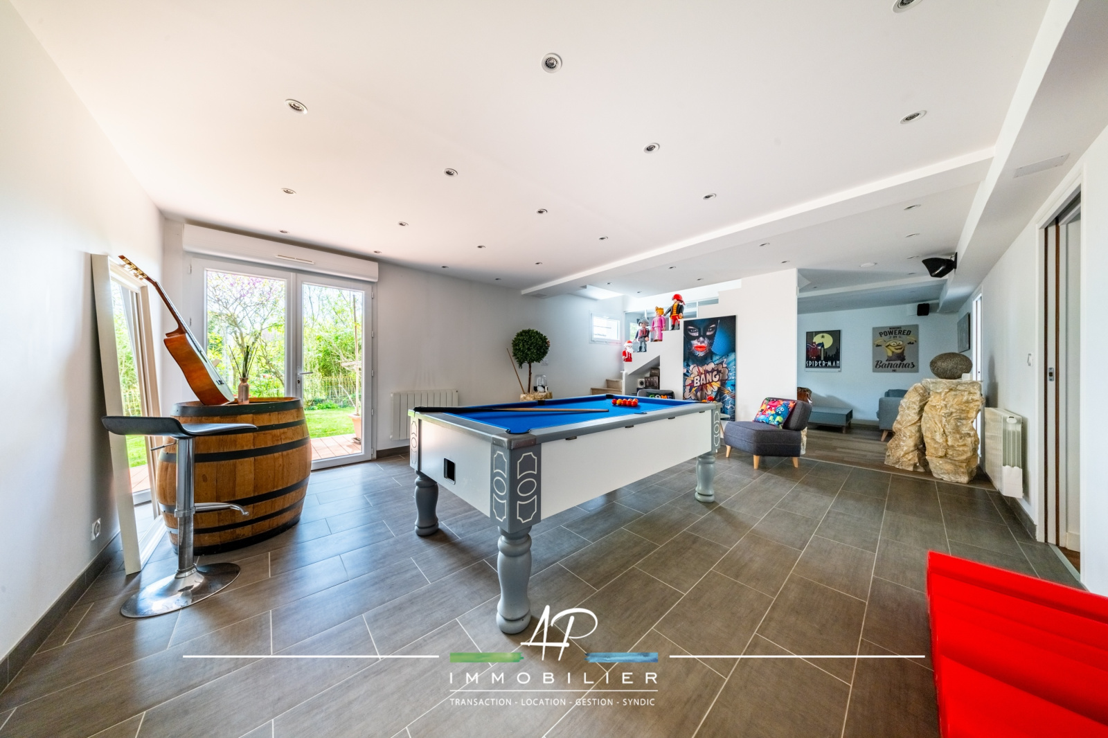 Développant une surface habitable d’environ 233 m² sur un terrain clos de 810 m², cette propriété offre de beaux volumes et une organisation fonctionnelle parfaitement adaptée à la vie de famille. Au niveau principal, vous découvrirez une cuisine équipée ouverte de 16 m² donnant sur un vaste salon/séjour lumineux de 36 m² agrémenté d’un insert bois. Ce niveau comprend également trois chambres, dont une disposant d’un point d’eau, ainsi qu’un dressing, une salle de bains et un WC indépendant.