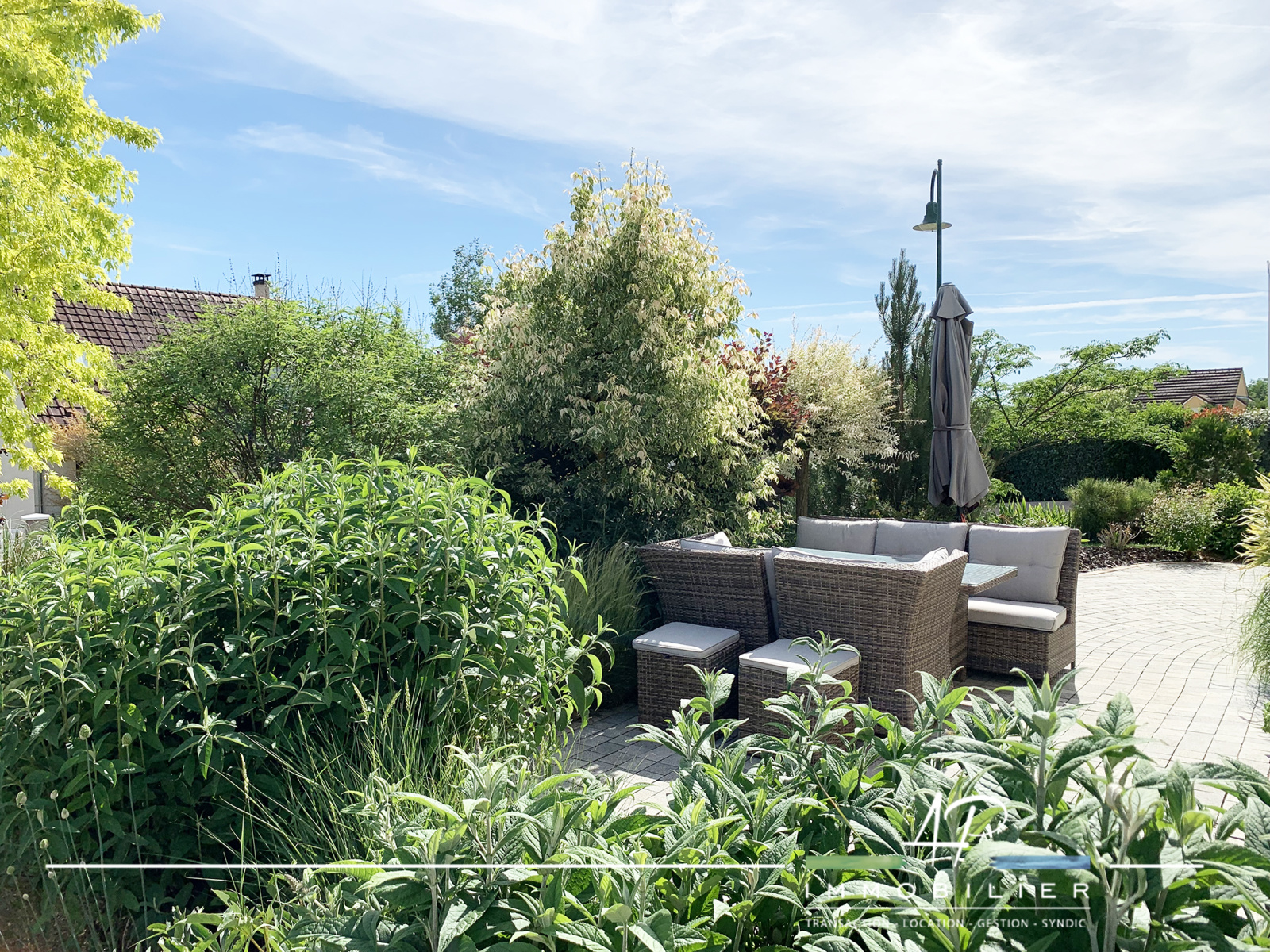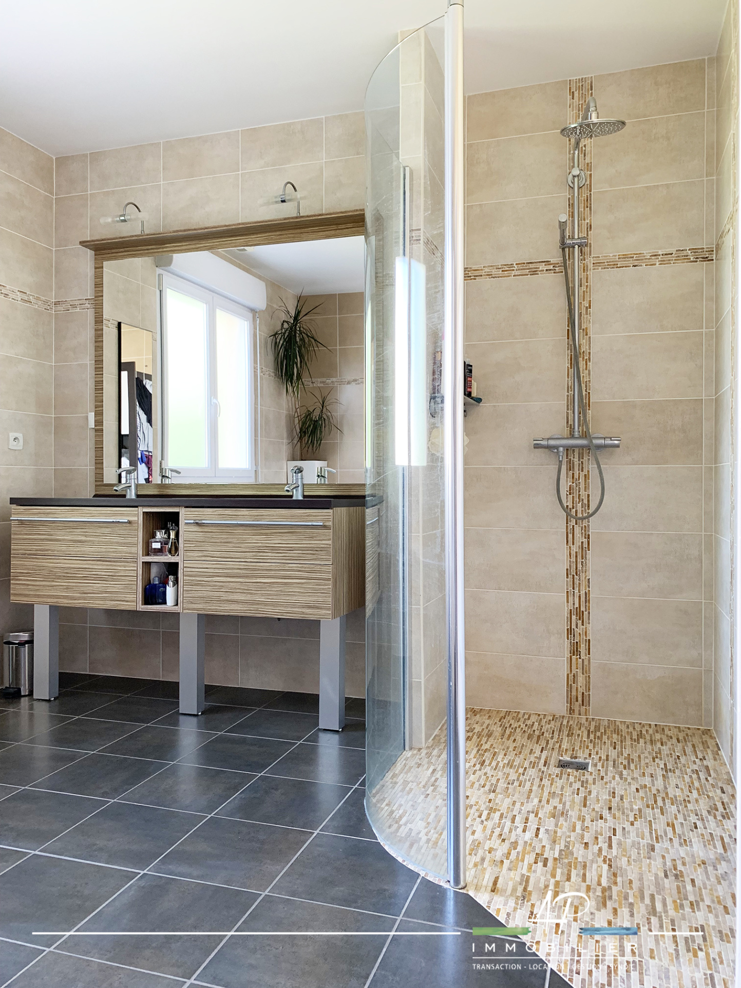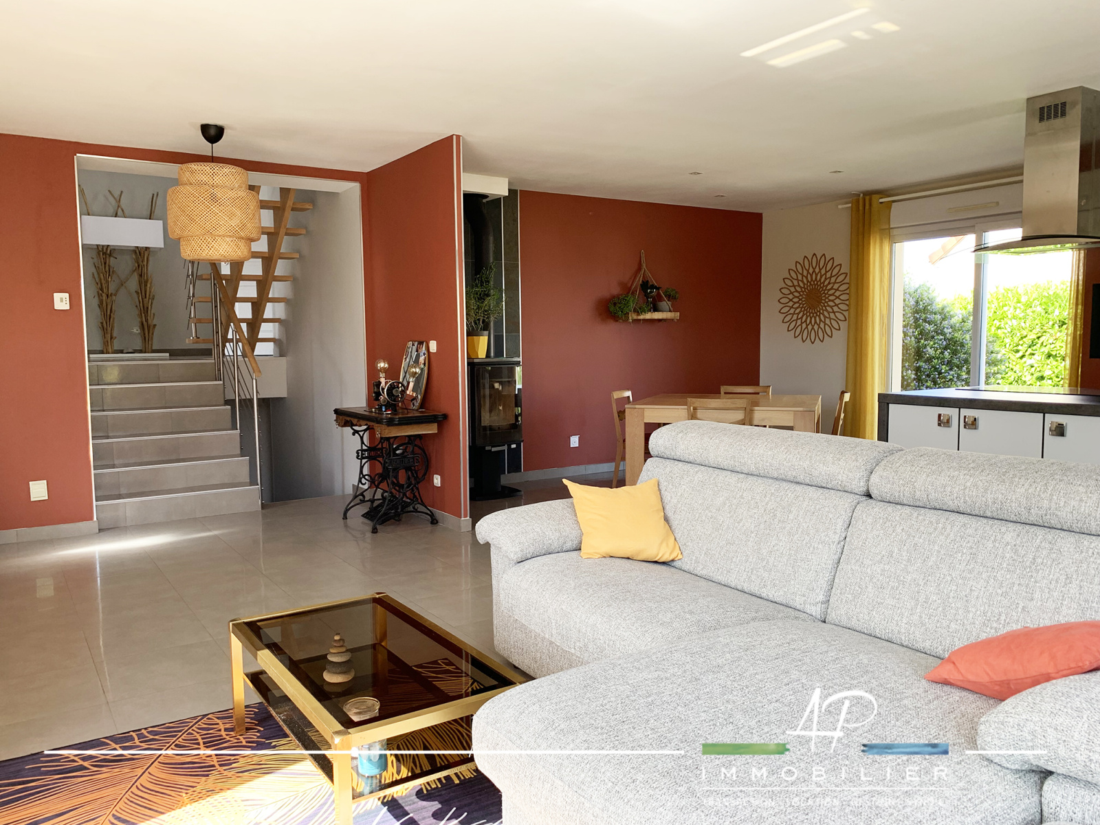 Le sous-sol de la maison (49m2) est composé de plusieurs espaces : bûcher, buanderie et garage. Le terrain est magnifiquement arboré et fleuri. Il est agrémenté d'une belle terrasse exposée sud/ouest. Chauffage au sol électrique et poêle à bois dans la pièce de vie. Prestations : Double vitrage, aspiration centralisée, porte de garage motorisée.