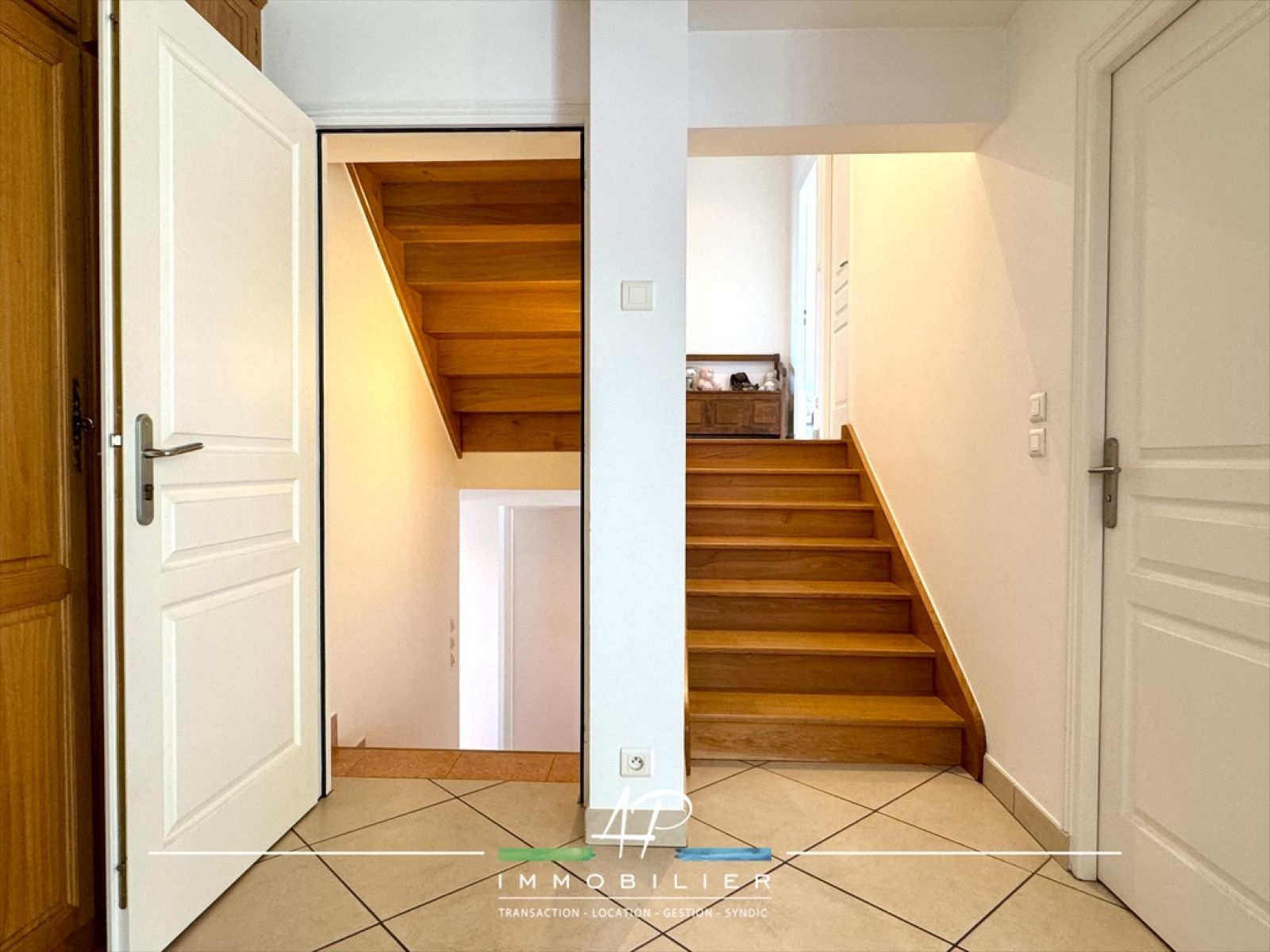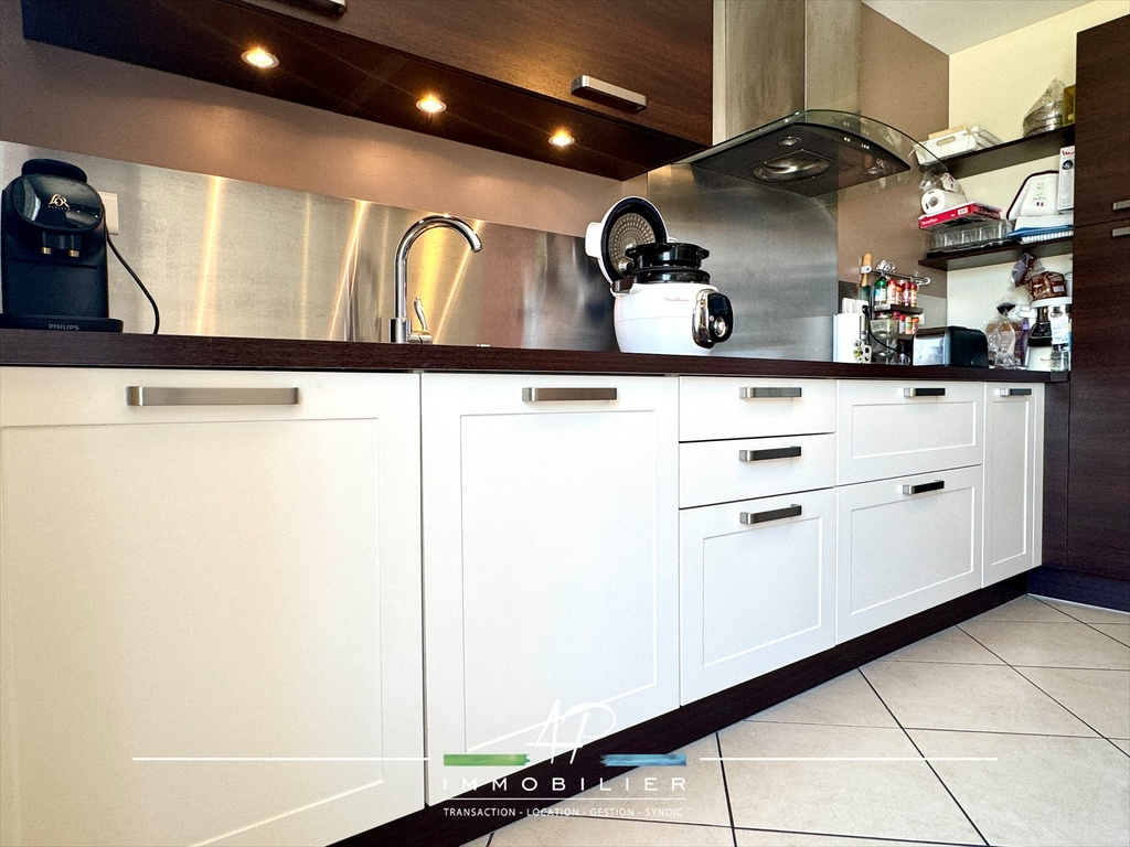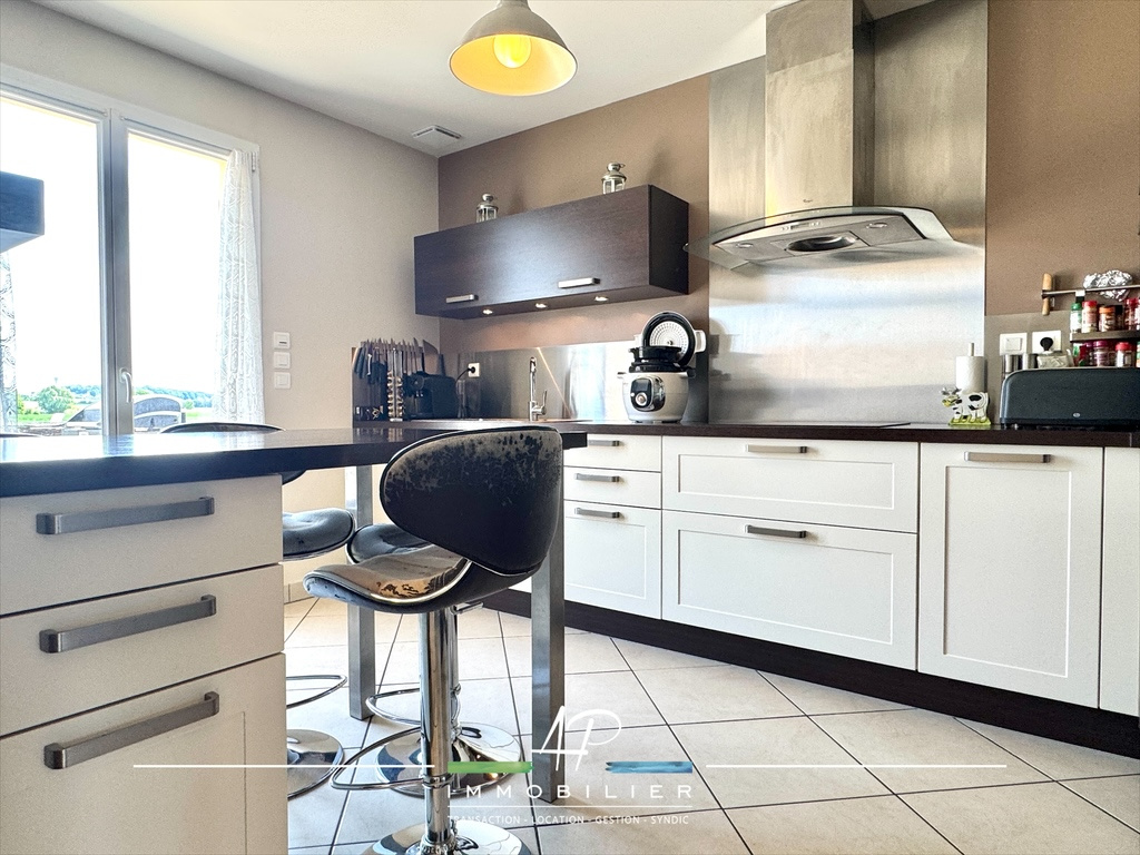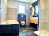 Vous profiterez au rez-de-chaussée d'un hall d'entrée, d'une grande pièce de vie baignée de lumière avec cuisine aménagée et équipée Schmitt (2011), sur un demi-niveau: un palier distribue trois belles chambres (12,54 m², 14,5 m², 14,35 m²), une salle de bains indépendante avec baignoire, douche, wc et meuble vasque.