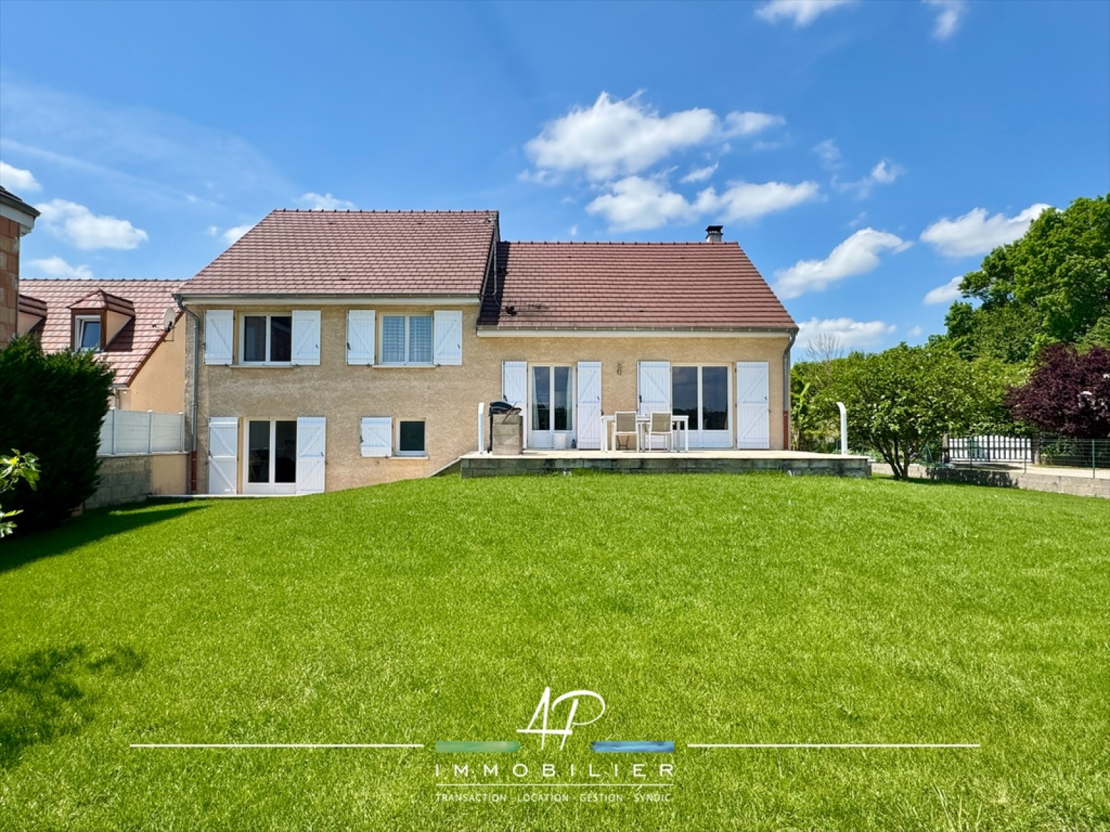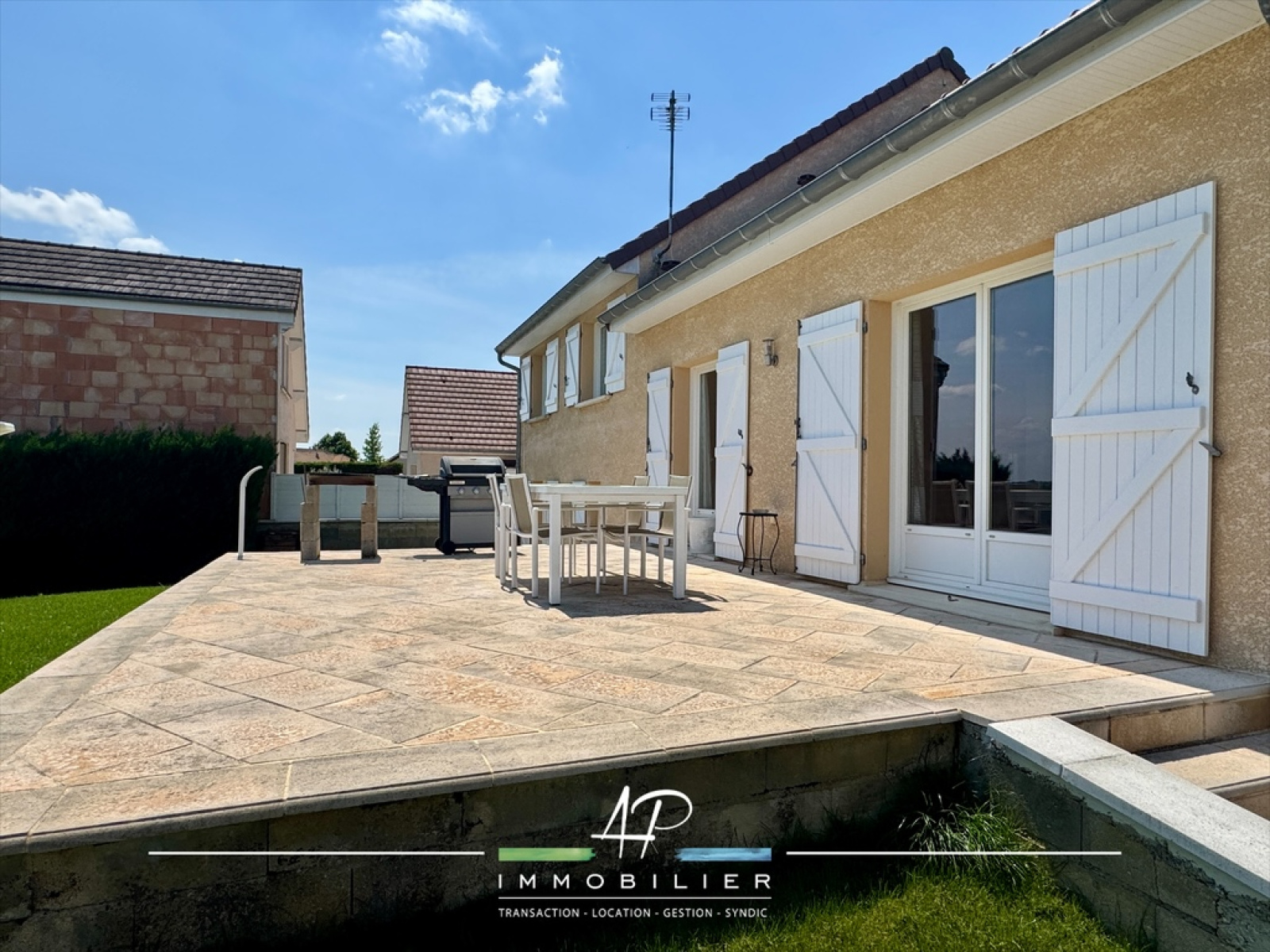A l'extérieur, la terrasse plein EST accessible depuis la cuisine et la pièce de vie vous offrira une vue dégagée sur les champs appréciable en toutes saisons.