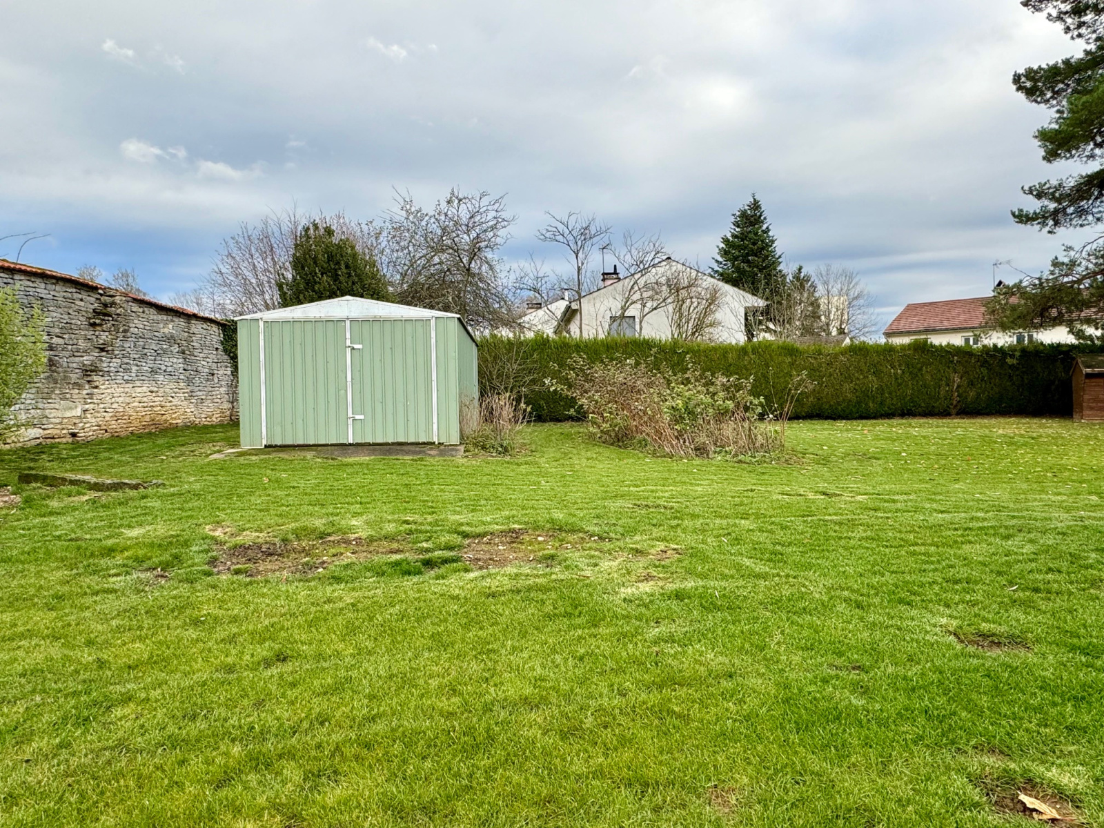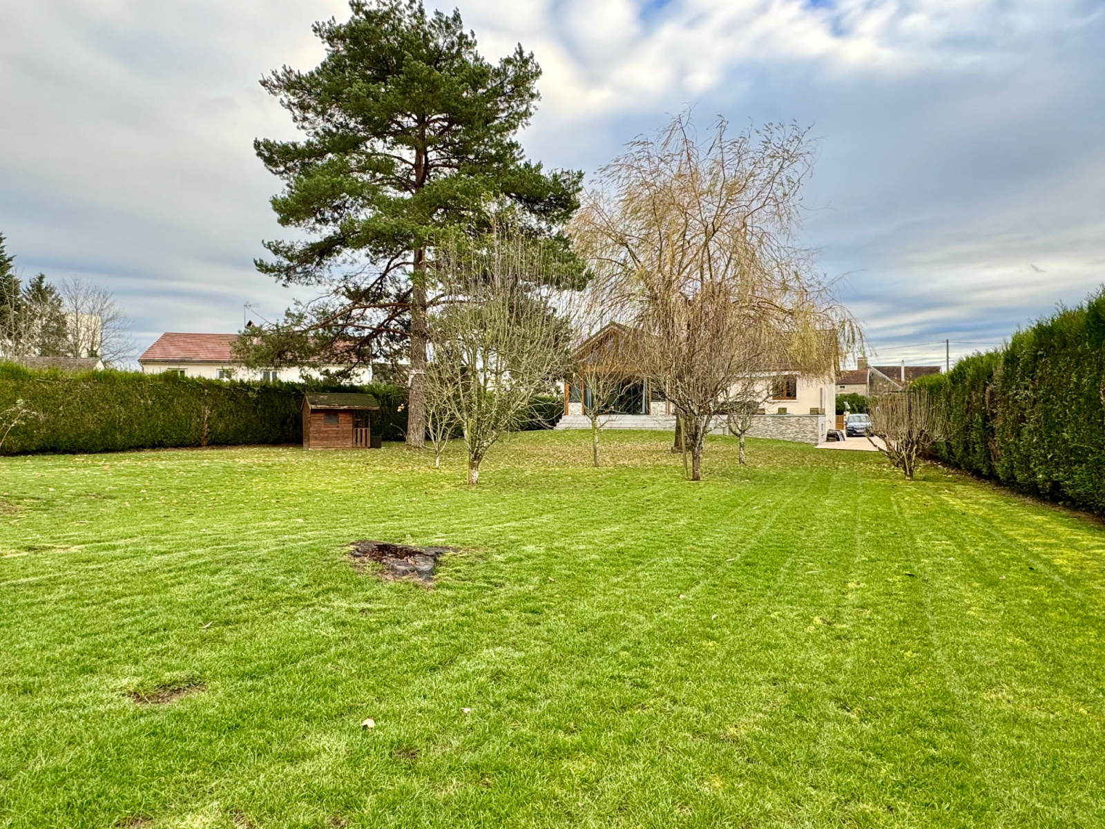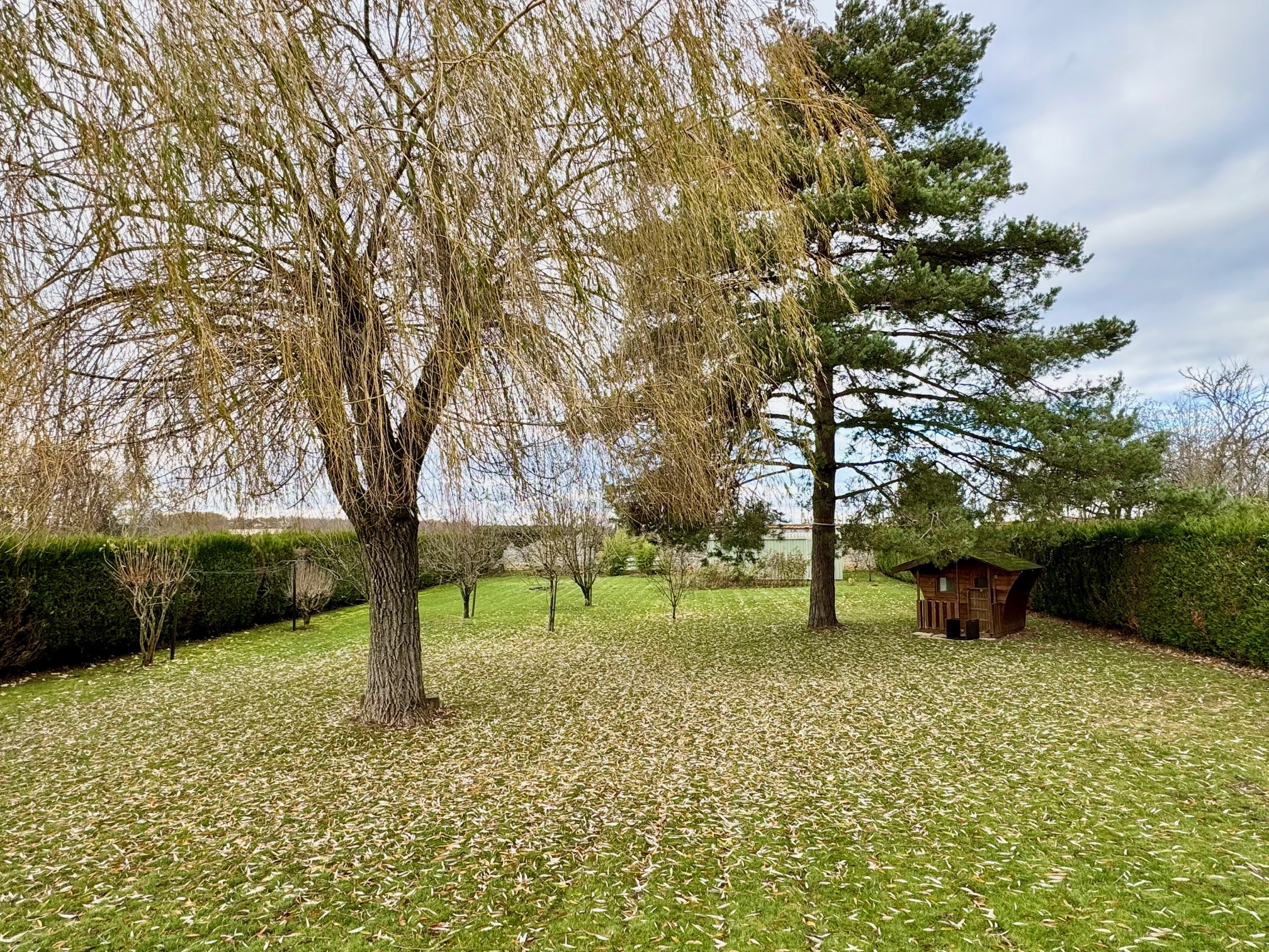 Terrain clos et arboré de 1623 m², entretenu par un paysagiste. Une cabane de jardin est située en fond de terrain.